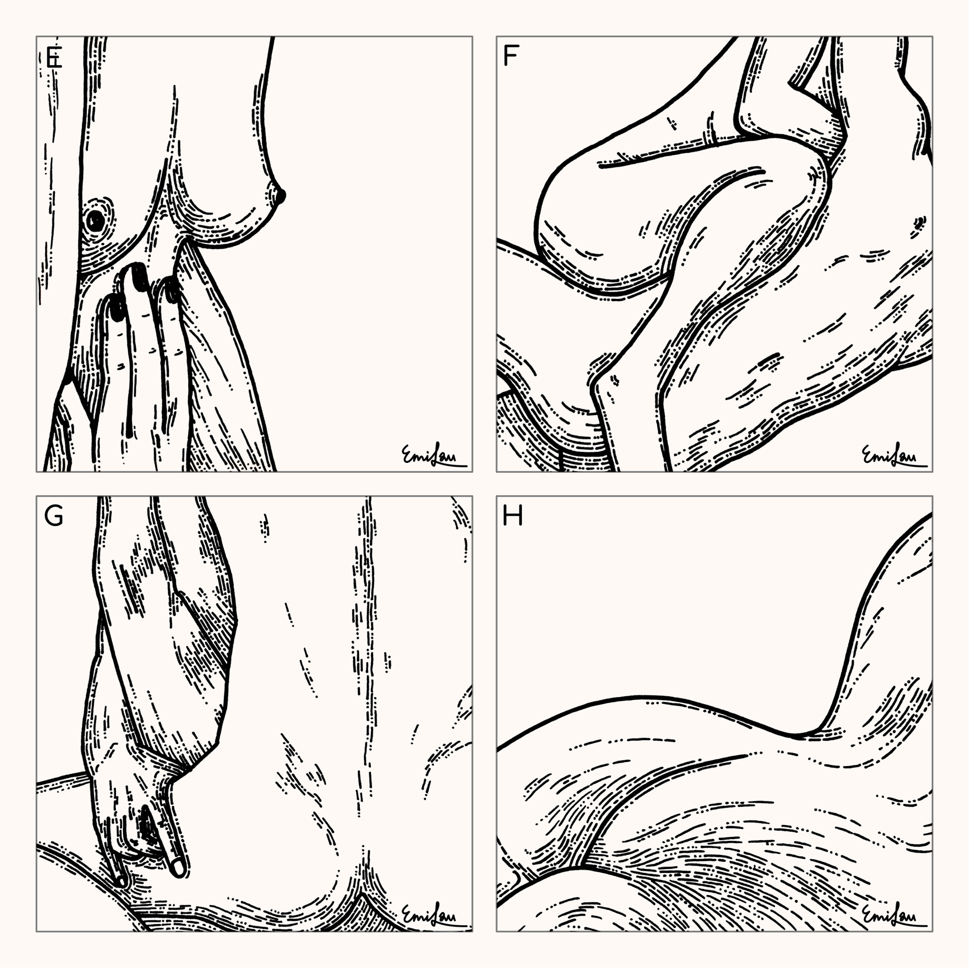 These pieces bring warmth, elegance, and quiet romance to bedside tables or personal spaces. The minimalist linework invites lingering appreciation of form, connection, and the subtle beauty of the body.