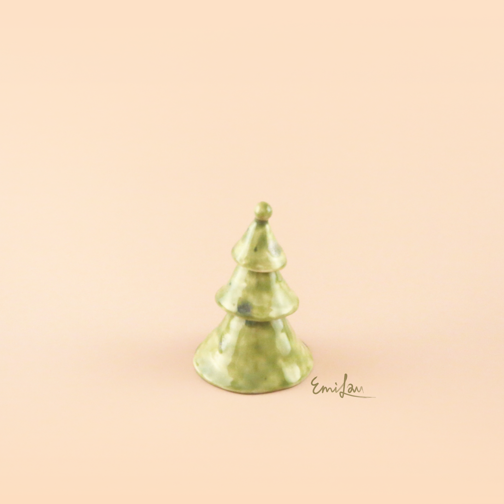 A set of three hand-built porcelain cones with a fresh green, flowing glaze stacks into a delicate tree for seasonal display or stands individually as a graceful jewelry holder.